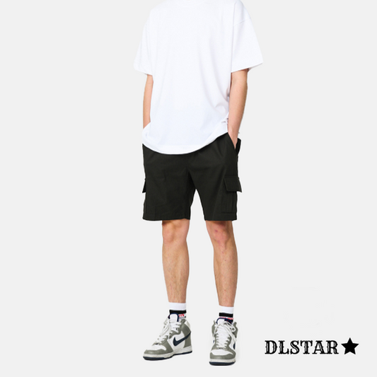 DLSTAR Unisex Comfort Fit Utility Cotton Cargo Shorts with Elastic Waistband